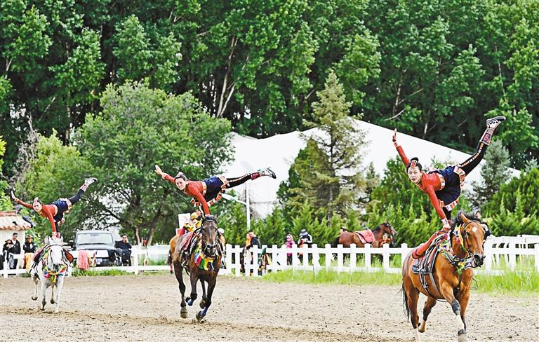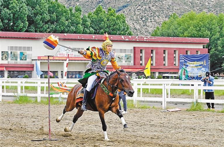 圖為騎手表演馬術(shù)。記者 旦增蘭澤 攝