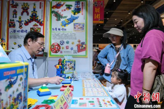 此次展會現場還有益智教具展位。臺灣博士兒實業(yè)有限公司總經理葉國義現場操作一些三角形、正方形積木變形成各種立體的形狀。他介紹,公司主要經營數學教具,將各種數學基本原理融入積木設計中,致力于兒童和青少年的數理概念潛能開發(fā)。