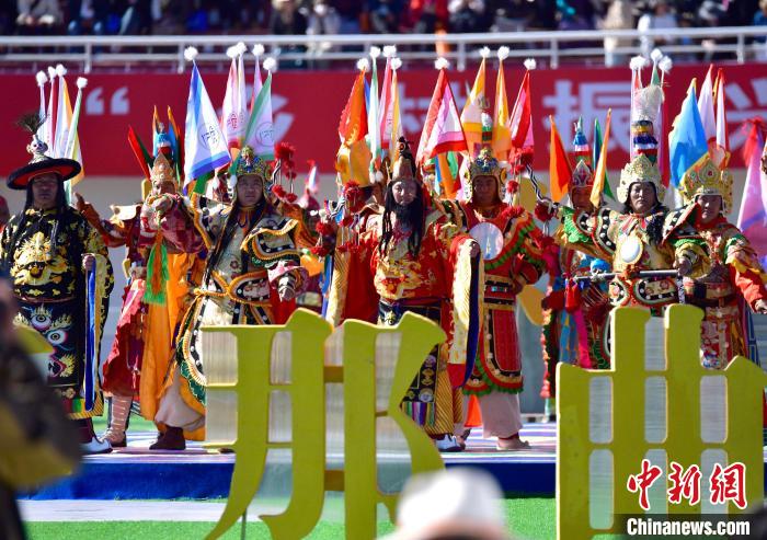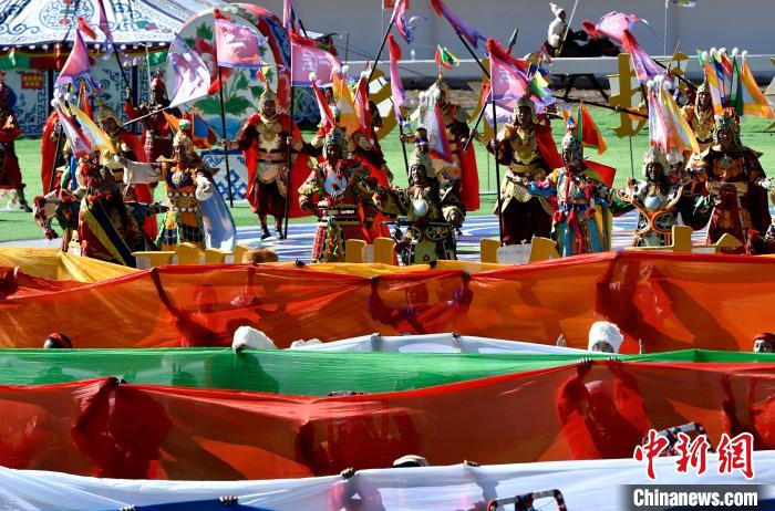 8月10日,2024年那曲恰青賽馬節(jié)暨第三屆“鄉(xiāng)村振興 那曲奮進”活動開幕式在那曲市賽馬場舉行,精彩的文藝歌舞、馬術(shù)表演等展示著羌塘草原上的無窮魅力和活力。圖為開幕式文藝表演現(xiàn)場。中新社記者 李林 攝