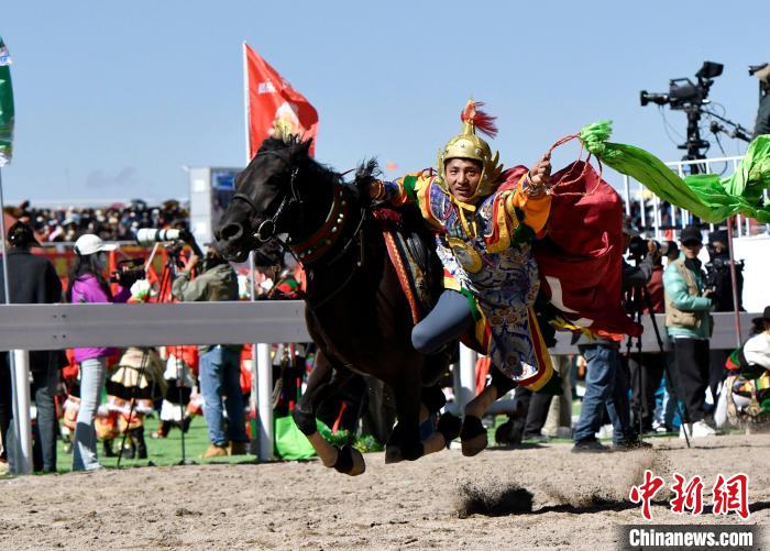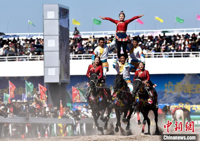8月10日,2024年那曲恰青賽馬節(jié)暨第三屆“鄉(xiāng)村振興 那曲奮進”活動開幕式在那曲市賽馬場舉行,精彩的文藝歌舞、馬術(shù)表演等展示著羌塘草原上的無窮魅力和活力。圖為開幕式上的馬術(shù)表演。中新社記者 李林 攝