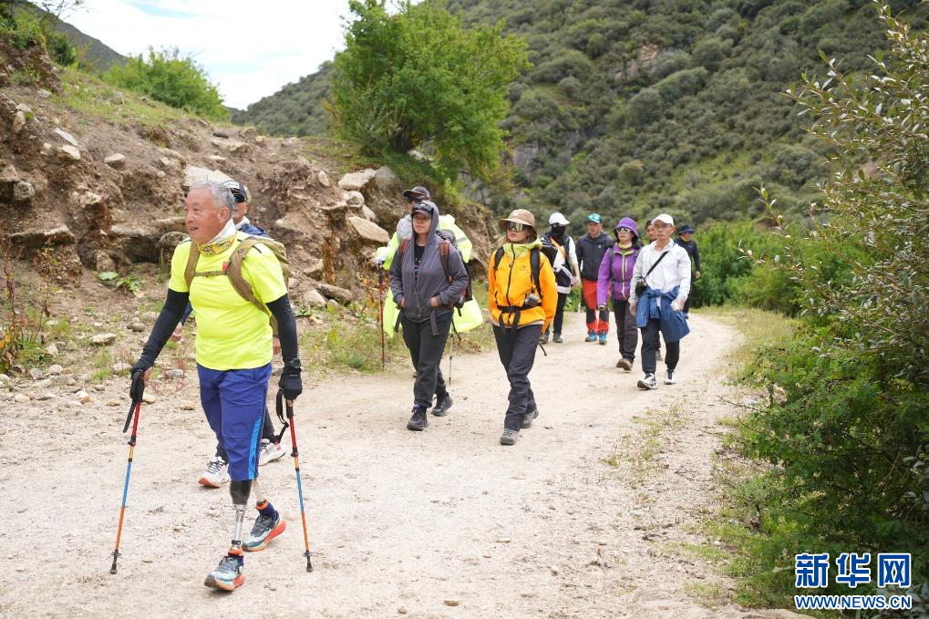 來(lái)自全國(guó)各地的戶外運(yùn)動(dòng)愛好者在徒步活動(dòng)中。新華社發(fā)