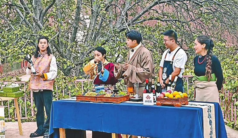 探訪團(tuán)品嘗昌都芒康的葡萄酒。記者 貢秋曲措 攝
