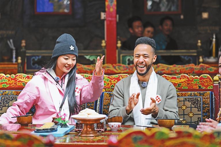 中央廣播電視總臺(tái)主持人苗霖、旅行博主朱大春與昌都音樂人巴鄧頓珠,在八宿縣縣委副書記、縣長(zhǎng)德嘎旺姆的熱情款待下,不僅欣賞了精彩的熱巴舞,享用了當(dāng)?shù)靥厣挛绮杓翱静叵阖i,還體驗(yàn)了市級(jí)非遺蕎麥餅的制作過程。節(jié)目尾聲,苗霖贊唱的一首他為這一路昌都四個(gè)站的感受創(chuàng)作的歌曲《這里是昌都》,為此次行程畫上了圓滿的句號(hào)。