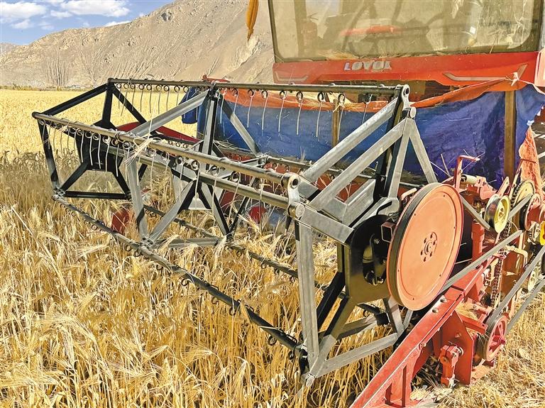收割機在江孜青稞田里作業(yè)。通訊員 代旭 攝