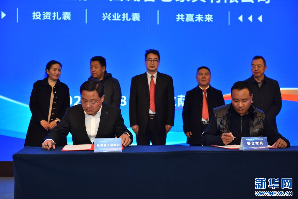 扎囊縣領(lǐng)導(dǎo)干部與意向落地企業(yè)在推介會(huì)現(xiàn)場(chǎng)簽約。(受訪對(duì)象供圖)