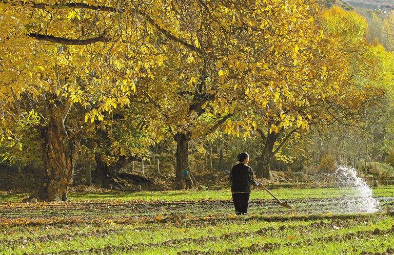 連日來,山南市加查縣組織各村有序開展冬灌工作,確保全縣冬灌農(nóng)田“喝”上水,為來年農(nóng)作物增產(chǎn)增收奠定基礎(chǔ)。圖為加查縣安繞鎮(zhèn)熱果村次仁曲珍在冬灌。記者 洛桑 攝