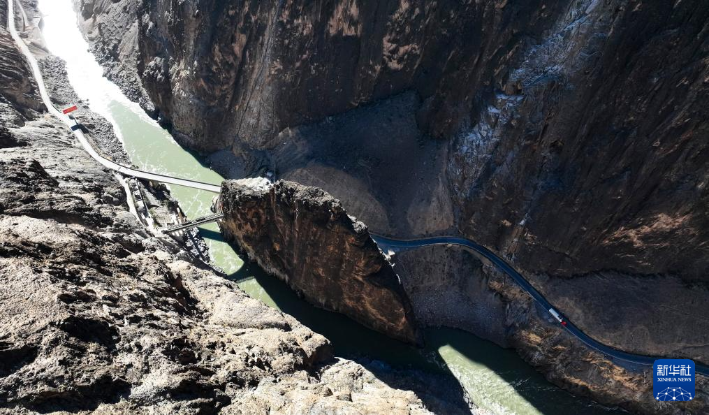 這是11月16日拍攝的位于西藏自治區(qū)昌都市八宿縣境內(nèi)的怒江大橋(無人機照片)新華社記者 楊帆 攝