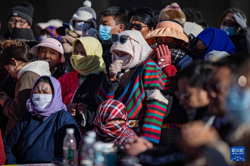 12月17日,森布日生態(tài)搬遷安置點(diǎn)居民在“物交會(huì)”上觀看開幕演出。新華社記者 姜帆 攝 ??