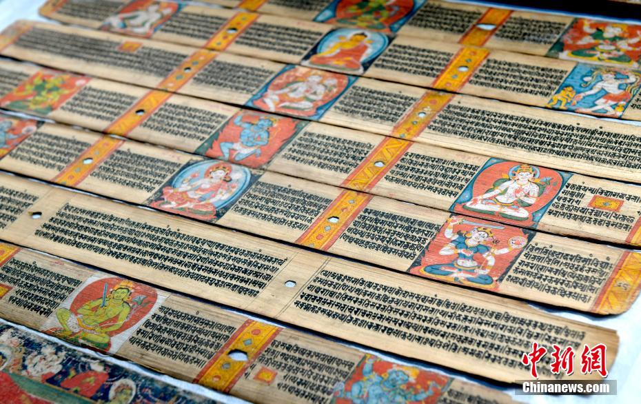 以“見證與守望——鑄牢中華民族共同體意識主題展”為主題的展覽近日亮相西藏自治區(qū)拉薩市布達拉宮雪城珍寶館。本次主題展精選100余件文物珍品,展覽通過文物、古籍及布達拉宮的傳承與發(fā)展,講述各民族交往交流交融的故事。圖為1月2日,展覽中的13世紀(jì)《般若八千頌》貝葉經(jīng)寫本。中新社記者 李林 攝