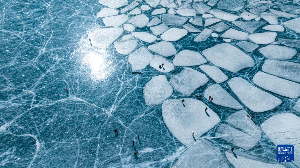 游客在恰央錯結(jié)冰的湖面上游玩(1月26日攝,無人機照片)。新華社記者 丁增尼達 攝 ??