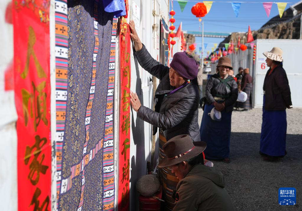 1月26日,拉孜縣吉如村安置點(diǎn)群眾在掛吉祥結(jié)。新華社記者 晉美多吉 攝?