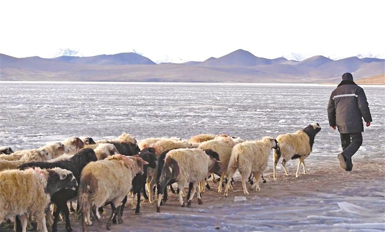 在西藏山南巍峨的群山之間,普莫雍錯(cuò)如同一顆璀璨的藍(lán)寶石,鑲嵌在海拔5000多米的高原之上。每年2月,當(dāng)湖面結(jié)冰封凍時(shí),浪卡子縣推瓦村的村民便會(huì)將羊群集結(jié)在一起,通過(guò)冰面趕往湖心島過(guò)冬,這一過(guò)程被稱(chēng)為“冰上趕羊”。