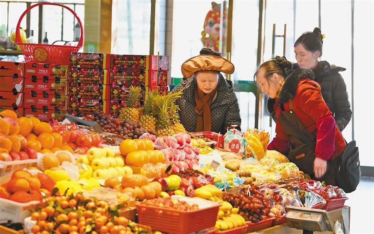 隨著藏歷新年的臨近,拉薩節(jié)日市場(chǎng)持續(xù)升溫,街頭巷尾擠滿了前來(lái)采購(gòu)年貨的市民群眾,卡賽、酥油花、水果、肉蛋奶等商品琳瑯滿目,節(jié)日氛圍愈加濃厚。 圖為市民群眾在超市內(nèi)選購(gòu)水果。記者 唐斌 攝