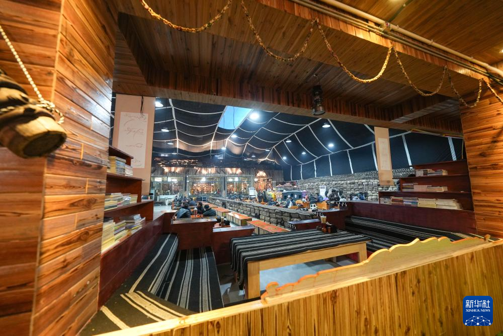 西藏那曲市“牧人寶庫”藏式茶館一角(2月13日攝)。新華社記者 晉美多吉 攝