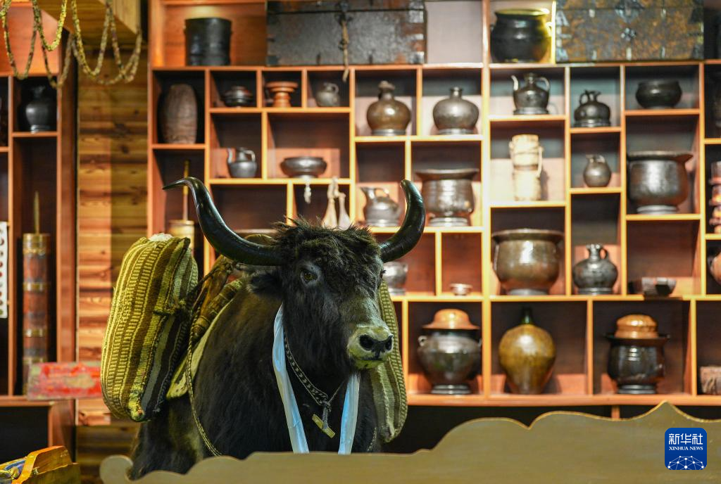 茶館主人珠珠將藏式茶館與民俗陳列方式相結(jié)合,讓顧客在品嘗美食的同時(shí),沉浸式體驗(yàn)民俗文化。茶館四周和過道上擺滿700余種3000多件西藏民俗物件,有給牛犢喂奶的牛角奶瓶、火柴盒大小的便攜酥油盒、防沙塵和雪盲的牦牛毛墨鏡等。牧民生產(chǎn)生活用具幾乎都能在這里找到,獨(dú)具風(fēng)格的茶館儼然成為一座藏北游牧文化“博物館”。??