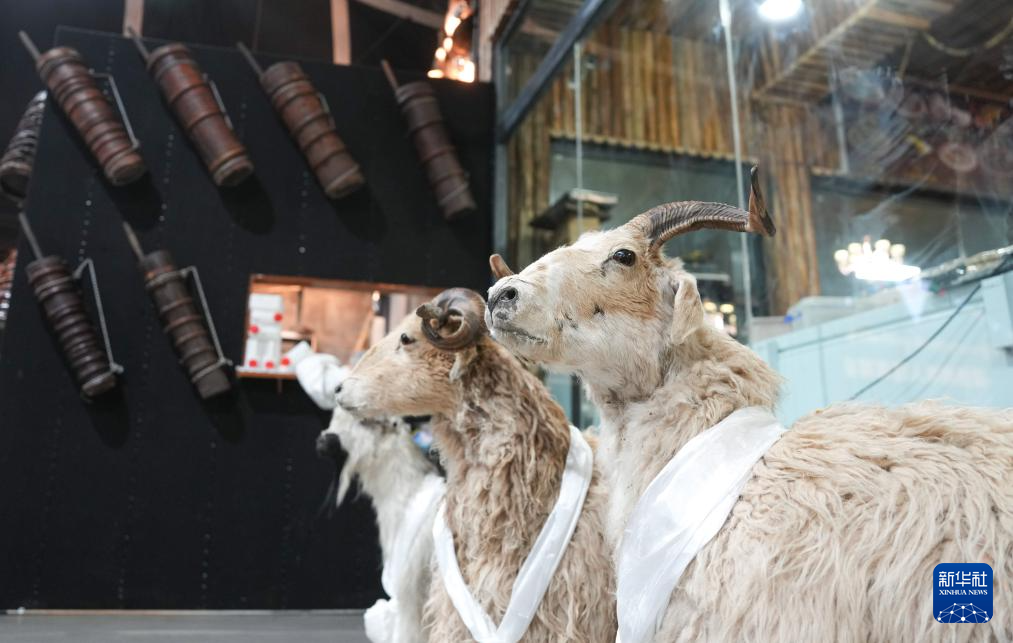 當(dāng)?shù)孛袼讓<邑暡悸逋凇澳寥藢殠臁辈厥讲桊^展示擠羊奶用的木桶(2月13日攝)。新華社記者 晉美多吉 攝??