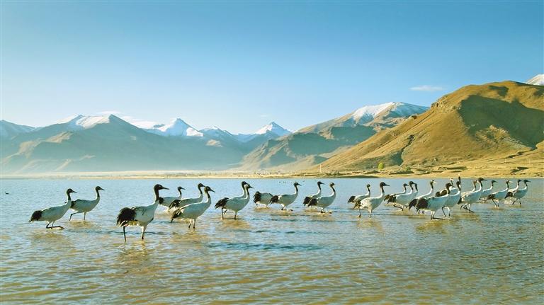 黑頸鶴作為高原上的珍稀鳥類,是拉薩與林周生態(tài)環(huán)境中的重要組成部分。它們優(yōu)美的身姿和悠揚的叫聲,成為這片土地上不可或缺的生態(tài)符號。中國野生動物保護協(xié)會科學考察委員會副主任委員、北京林業(yè)大學博士研究生導師李連成說:“拉薩地區(qū)作為黑頸鶴重要的越冬地,得到了當?shù)卣块T和社會各界的高度重視,黑頸鶴越冬種群數(shù)量不斷增加,活動區(qū)域不斷擴大。2022年的調(diào)查數(shù)據(jù)顯示,拉薩地區(qū)的黑頸鶴越冬種群數(shù)量約為3375只,其中林周縣有2938只。目前,新一輪針對林周縣黑頸鶴越冬種群數(shù)量的調(diào)查工作正積極推進中。”