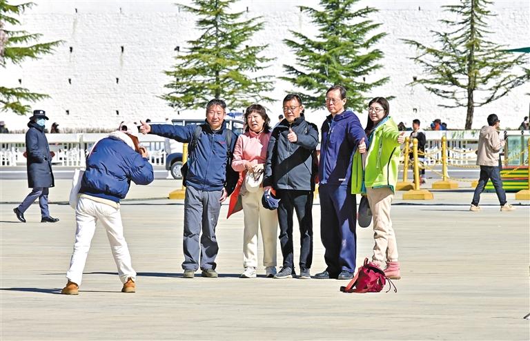 圖為游客正在布達(dá)拉宮廣場拍照留念。 記者 唐斌 攝