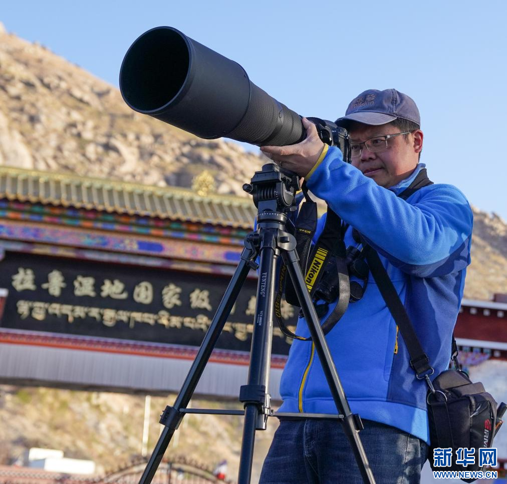 西藏自治區(qū)高原生物學會成員楊樂在拉魯濕地進行拍攝。