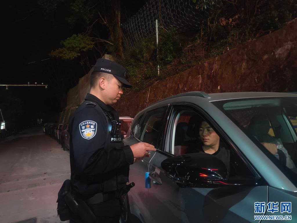 這是民警夜間指導(dǎo)待出口新能源汽車輛停靠口岸預(yù)檢預(yù)放車位。(新華社發(fā) 洛追次仁 攝)