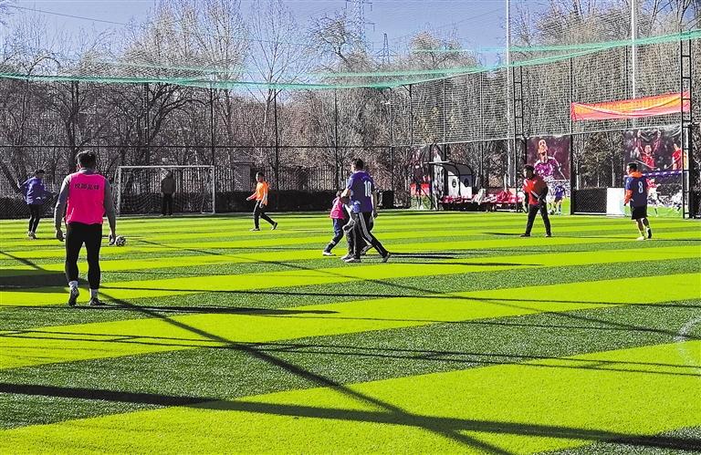 市民在拉薩市曲米路濕地公園踢足球。記者 洛桑 攝
