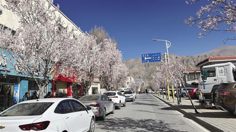 暮春時節(jié),隨著一樹樹繁花次第綻放,拉薩春的氣息也愈發(fā)濃烈。這個浪漫的季節(jié)也是游玩賞花的好時候。布達(dá)拉宮腳下的桃花粉白一片,次角林的古桃樹早已燦若云霞,與布達(dá)拉宮的桃花遙遙相對。高原慷慨的陽光將花瓣照得透明,春風(fēng)拂過,閃爍微光的花瓣輕輕搖曳,無一不在訴說著春日的美好。