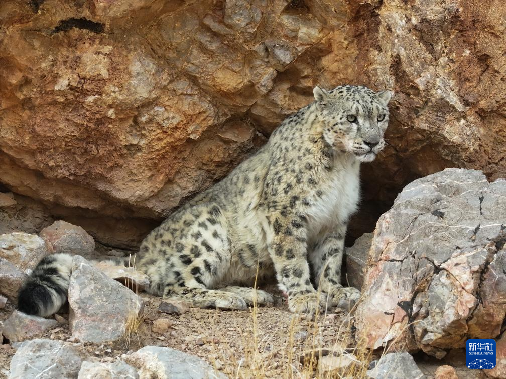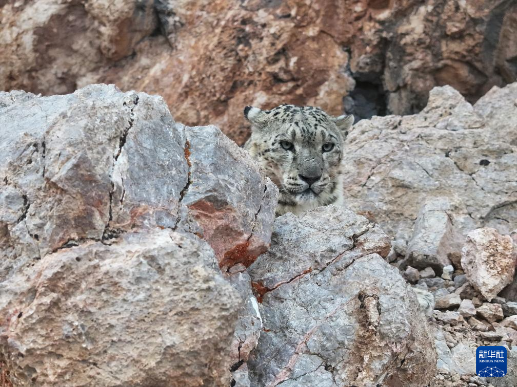 西藏阿里改則縣改則鎮(zhèn)玉多村附近巖山區(qū)域拍攝到的國家一級(jí)保護(hù)動(dòng)物雪豹(4月18日攝)。新華社發(fā)(索朗仁青 攝)