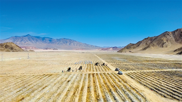 圖為日土縣熱幫鄉(xiāng)龍門卡村班公柳扦插現(xiàn)場。通訊員 達瓦 攝