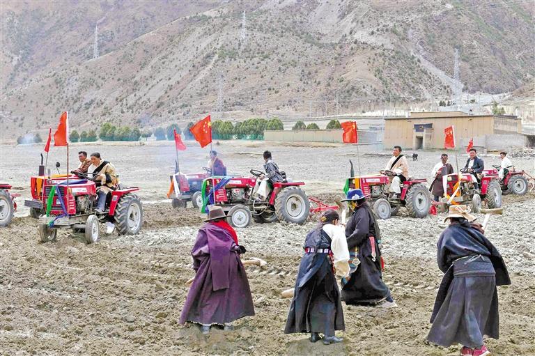 5月的那曲迎來春耕春播。在比如縣比如鎮(zhèn)的田野里,村民們駕駛著農(nóng)機翻耕田地,為今年的春播做準備。記者 萬靖 通訊員 白瑪曲吉 攝