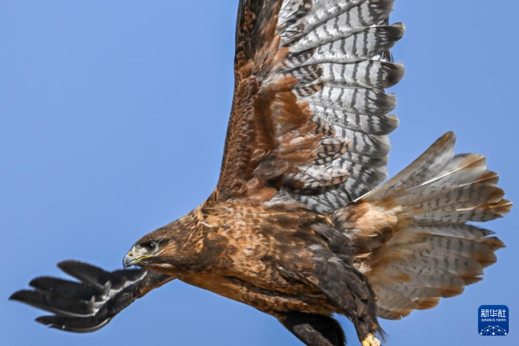 一只大鵟在羌塘草原展翅飛翔(6月8日攝)。新華社記者 劉金海 攝  ??