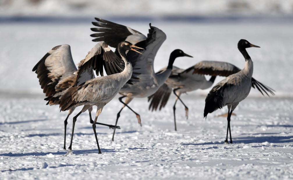 每年3月中下旬的初春時節(jié),黑頸鶴向繁殖地遷徙;秋季的9月,開始結群帶領幼鳥南遷越冬,遷徙路線分為東線、中線和西線,于10月中旬飛抵越冬地。