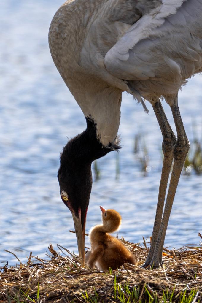 圖片中的這對黑頸鶴夫婦已連續(xù)8年在那曲市申扎縣申扎藏布濕地營巢育雛,并受到了普遍關注,每年都有攝影師前往拍攝。2024年,我們拍到了它們孵蛋的畫面。后來聽當?shù)匾氨T說,孵出的小鶴在兩個多月大的時候不幸夭折,這突如其來的打擊使得雌鶴抑郁了很長時間,有時會無緣無故地攻擊配偶,有時還會拔掉自己的尾羽,曾經(jīng)形影不離的夫妻倆很長時間不窩在一起休息……幸運的是,如今的它們已走出悲傷。2025年6月4日,我們又拍到了它們雛鳥出殼的瞬間,如今,新出生的小家伙正在茁壯成長。