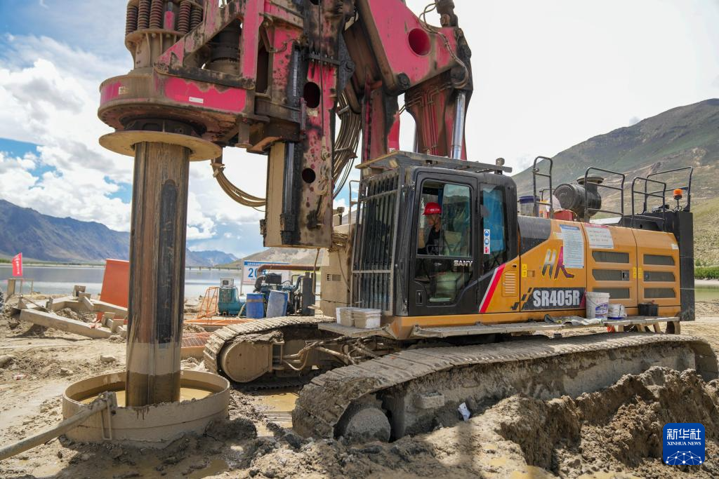 工人在進(jìn)行樁基機(jī)械成孔作業(yè)(6月18日攝)。新華社記者 晉美多吉 攝 ??