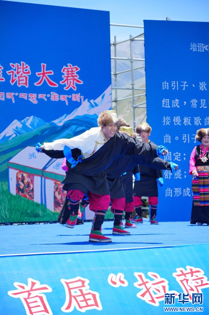 6月28日,藝術(shù)隊(duì)演員在拉薩首屆囊瑪堆諧大賽上表演。新華社記者劉洲鵬 攝