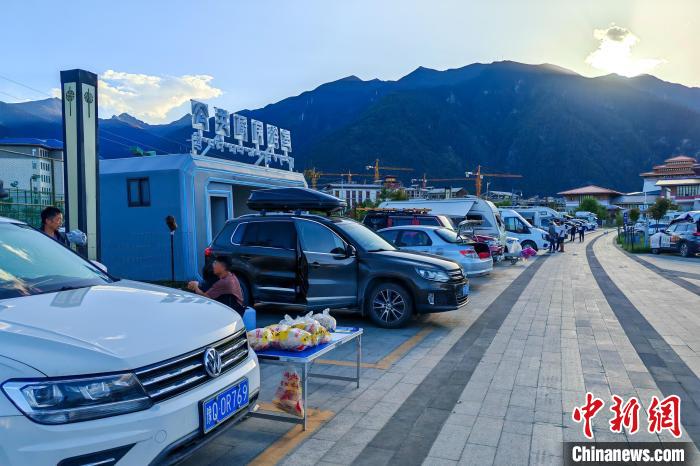 6月26日傍晚,西藏林芝宇拓公園自駕露營(yíng)地內(nèi)停放著來(lái)自中國(guó)各地的進(jìn)藏車輛,該營(yíng)地設(shè)有兩處公共廚房和浴室,方便自駕游客休整。中新社記者 江飛波 攝