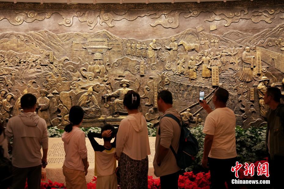 7月15日,在位于西藏拉薩的西藏博物館,觀眾參觀西藏歷史畫卷浮雕。據(jù)了解,西藏博物館設有基本陳列《雪域長歌—西藏歷史文化展》《離太陽最近的人—西藏民俗文化展》,充分展示西藏地區(qū)歷史發(fā)展進程與文化面貌。中新社記者 張祥毅 攝