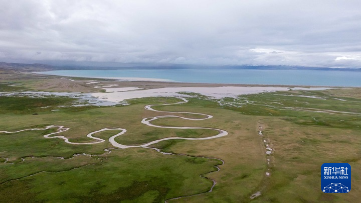 2025年7月22日拍攝的瑪旁雍錯(cuò)濕地一景(無人機(jī)照片)。新華社記者 旦增尼瑪曲珠 攝