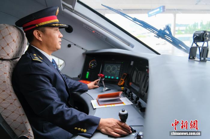 圖為6月20日,斯朗旺扎在高原復(fù)興號(hào)駕駛室,如今他已成為高原復(fù)興號(hào)動(dòng)車(chē)組資深司機(jī)。中新網(wǎng)記者 江飛波 攝