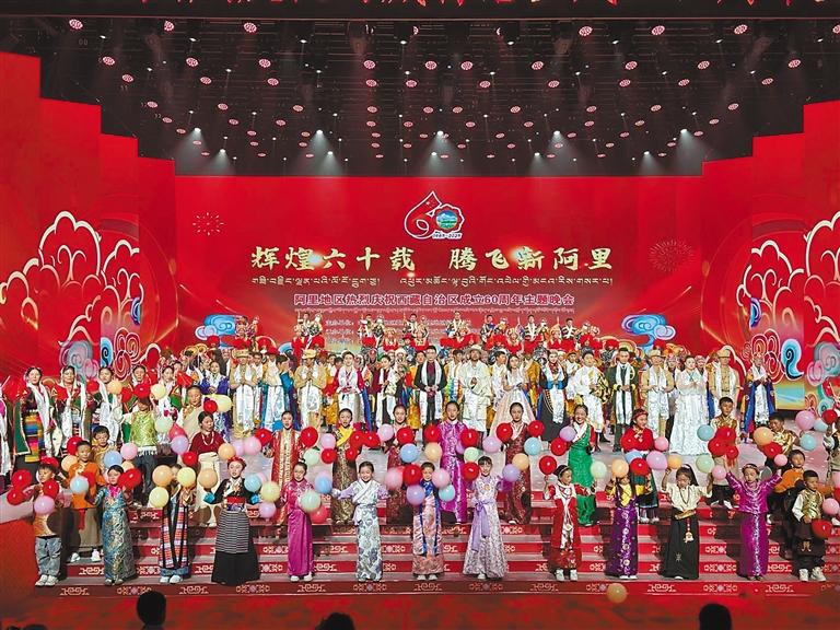 “輝煌六十載·騰飛新阿里”——阿里地區(qū)熱烈慶祝西藏自治區(qū)成立60周年主題晚會,日前在阿里地區(qū)影劇院舉行。記者 永青 洛桑旦增 攝