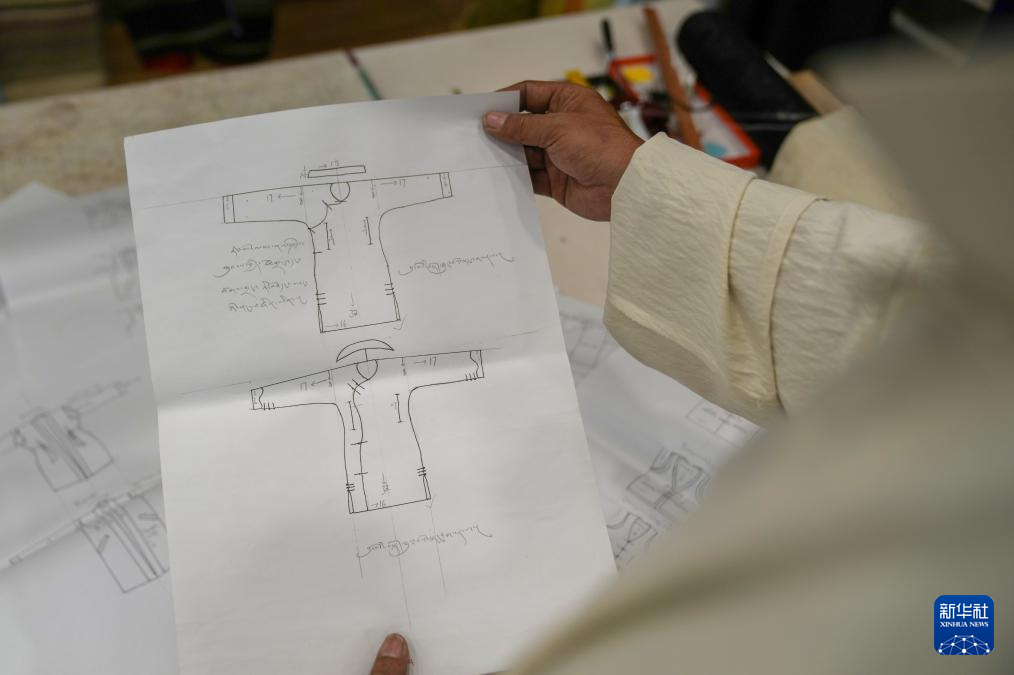 洛桑麥朗手繪的藏裝制作要領(lǐng)(8月15日攝)。新華社記者 晉美多吉 攝 ??