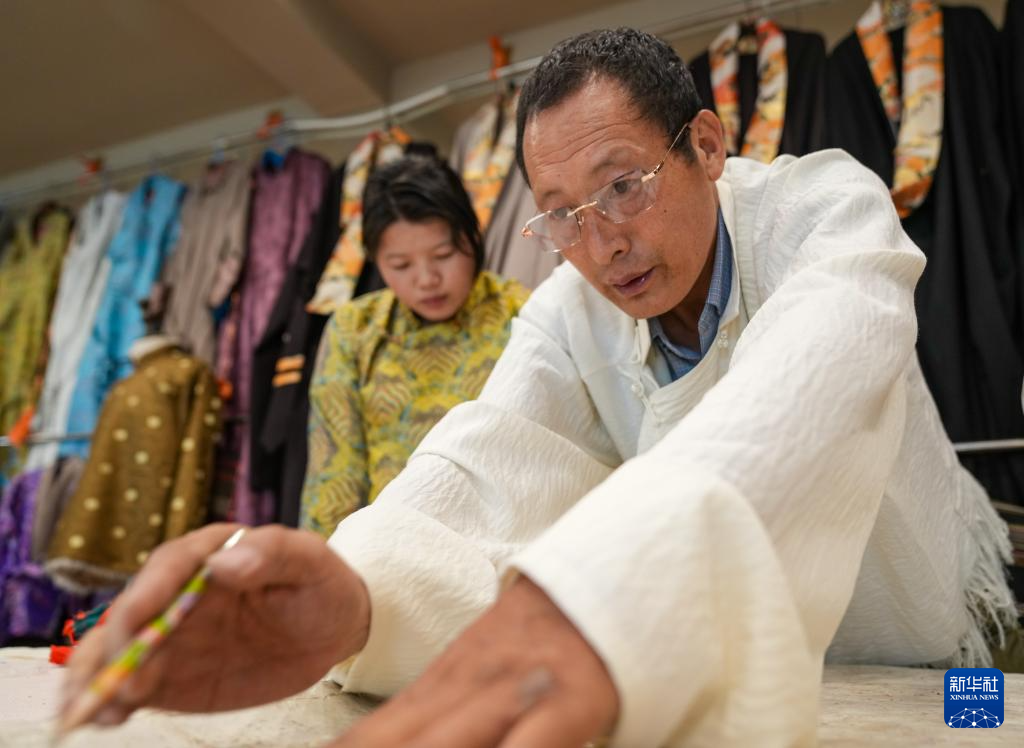 在拉薩雪堆白傳統(tǒng)手工藝術(shù)學(xué)校,60歲的西藏自治區(qū)級非物質(zhì)文化遺產(chǎn)項目藏族服飾(拉薩服飾)代表性傳承人洛桑麥朗,與學(xué)徒一道研究、制作藏裝。從藝四十余載,他培養(yǎng)了百余名弟子,還參與編撰教材、建立藏族服飾數(shù)據(jù)庫等工作。在他的巧手下,新式藏裝將傳統(tǒng)與現(xiàn)代交融,讓非遺技藝與現(xiàn)代審美碰撞,成為街頭一道靚麗的風(fēng)景?! ??