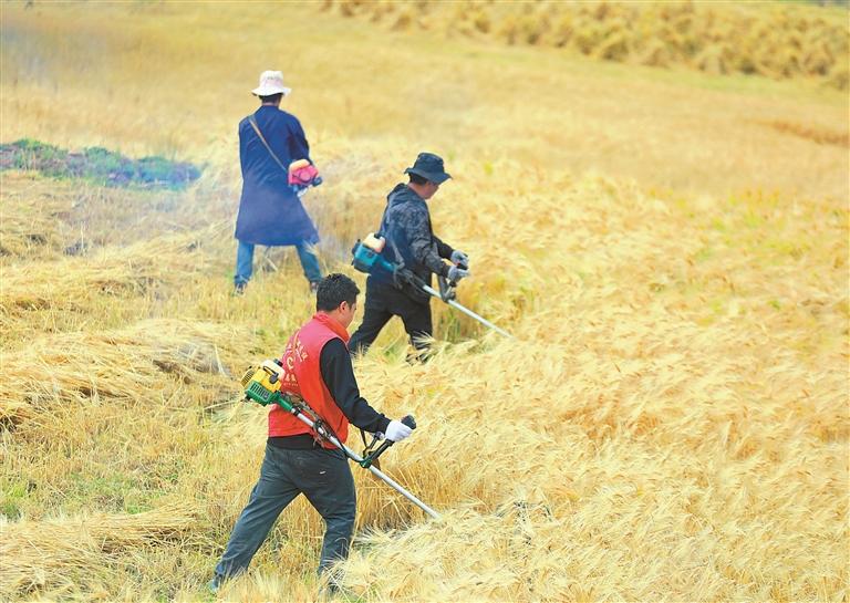 9月2日,昌都市丁青縣色扎鄉(xiāng)組織23名黨員干部組成幫扶小隊,開展秋收助農(nóng)志愿服務(wù)。在田間地頭,黨員干部們分工協(xié)作,有條不紊地進行收割、搬運、晾曬,幫助卡通村缺乏勞動力的家庭搶收農(nóng)作物。