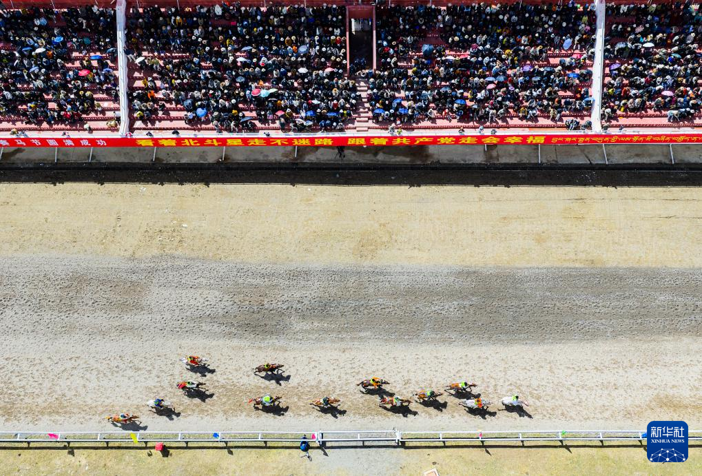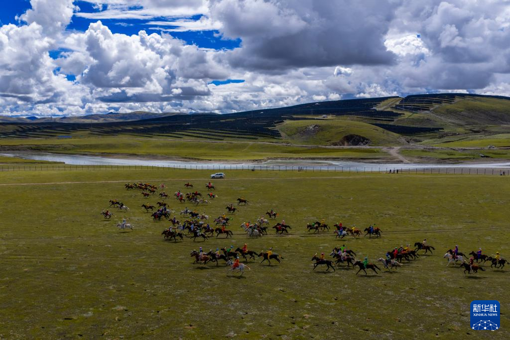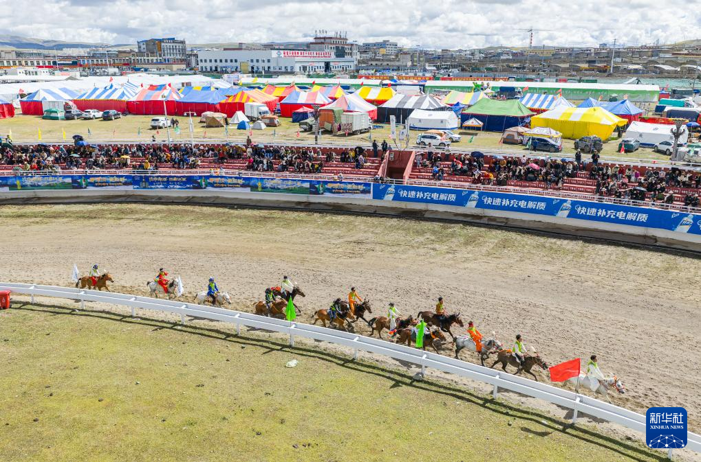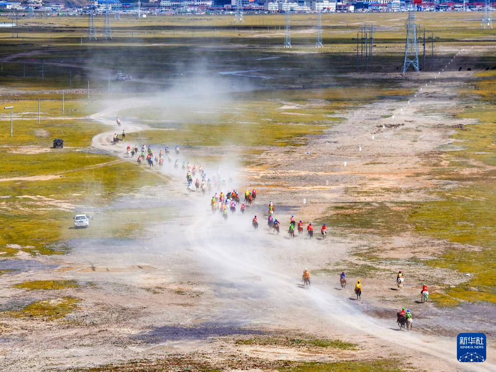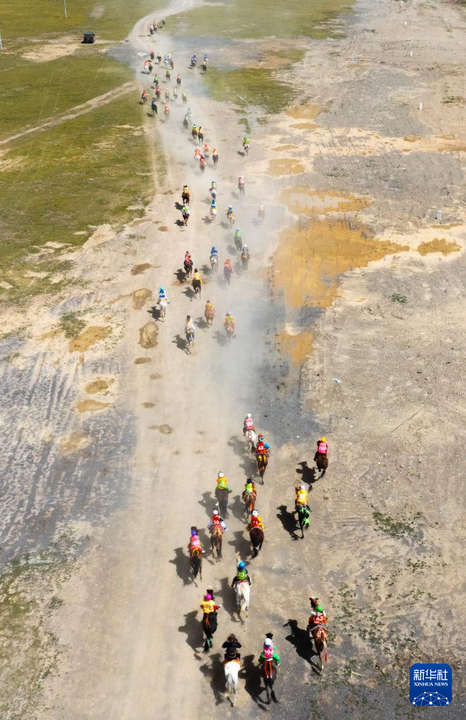 這是9月6日拍攝的恰青賽馬節(jié)比賽現(xiàn)場(無人機照片)。新華社記者 丁增尼達 攝