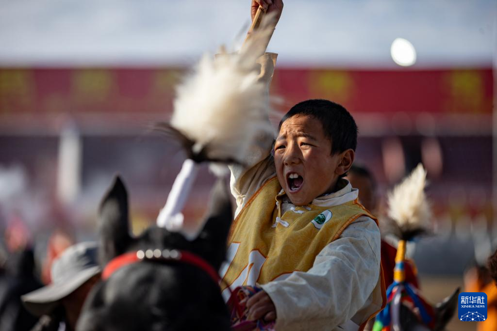 9月7日,騎手在傳統(tǒng)大跑項目前的傳統(tǒng)煨?;顒又衅砀?。新華社記者 姜帆 攝