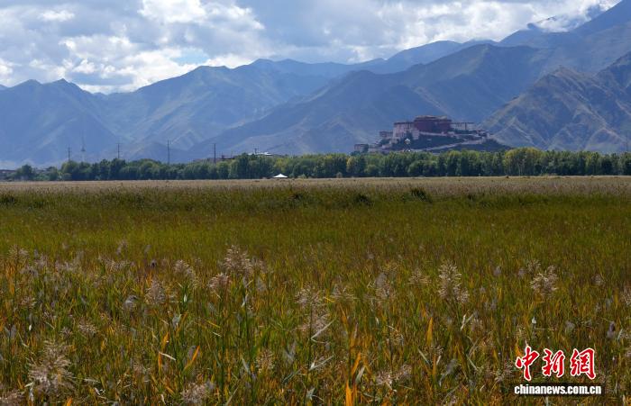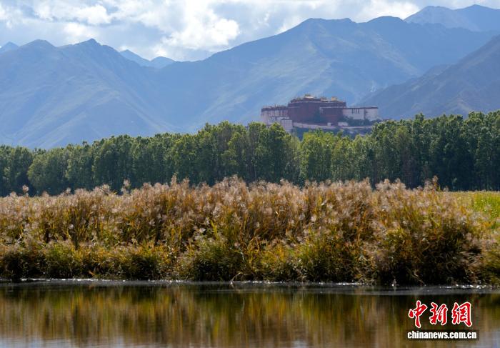 9月4日,初秋時節(jié)的西藏拉薩市拉魯濕地國家級自然保護區(qū)秋意漸濃、景色如畫。藍天白云下,草木黃綠、水鳥嬉戲,與遠處的城市建筑共同構(gòu)成一幅美麗的生態(tài)畫卷。中新社記者 李林 攝