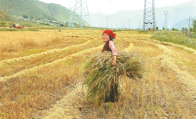 秋收時(shí)節(jié),廣袤田野鋪展金色畫卷。拉薩市墨竹工卡縣田間地頭一片繁忙景象,大型收割機(jī)轟鳴穿梭,村民忙碌其間,豐收喜悅洋溢臉龐。