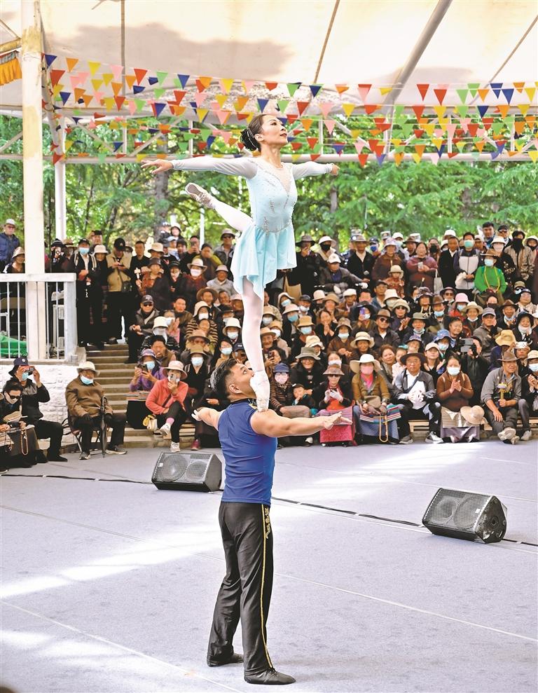 演員們在表演雜技《肩上芭蕾》。本報記者 唐斌 攝