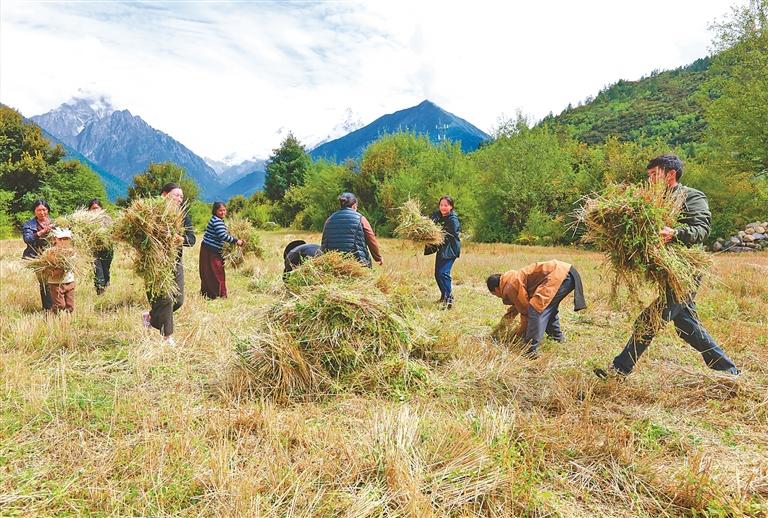 林芝市工布江達縣錯高鄉(xiāng)結巴村村民秋收場景。白瑪澤旺 次仁平措 攝