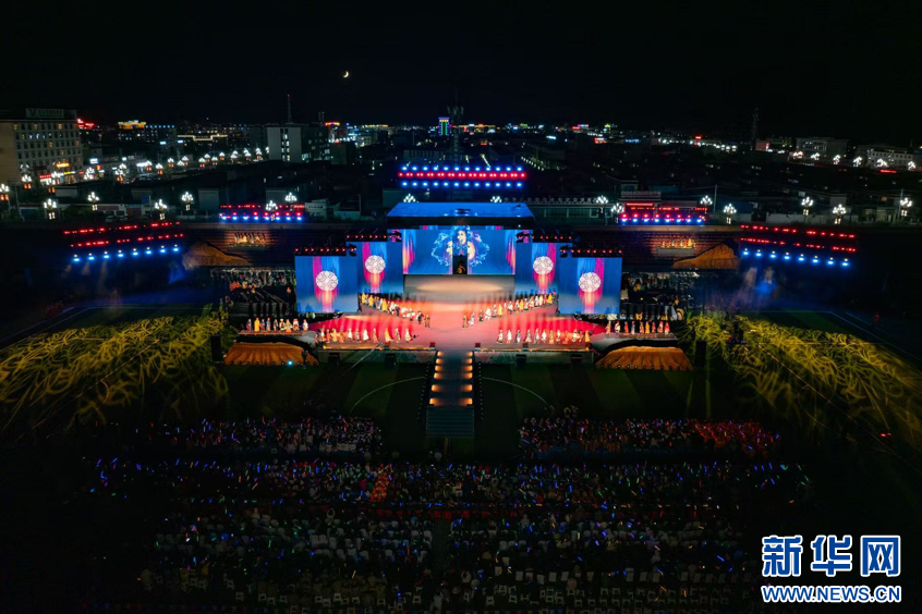 圖為第九屆象雄文化旅游節(jié)開幕式現(xiàn)場(chǎng)(無人機(jī)照片,9月26日攝)。新華網(wǎng) 旦增努布攝 ??