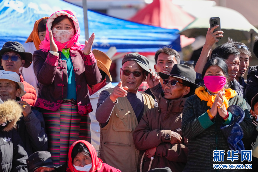 圖為第九屆象雄文化旅游節(jié)開幕式現(xiàn)場(chǎng)喝彩的群眾(9月26日攝)。新華網(wǎng) 柑丹鴦琦攝 ??